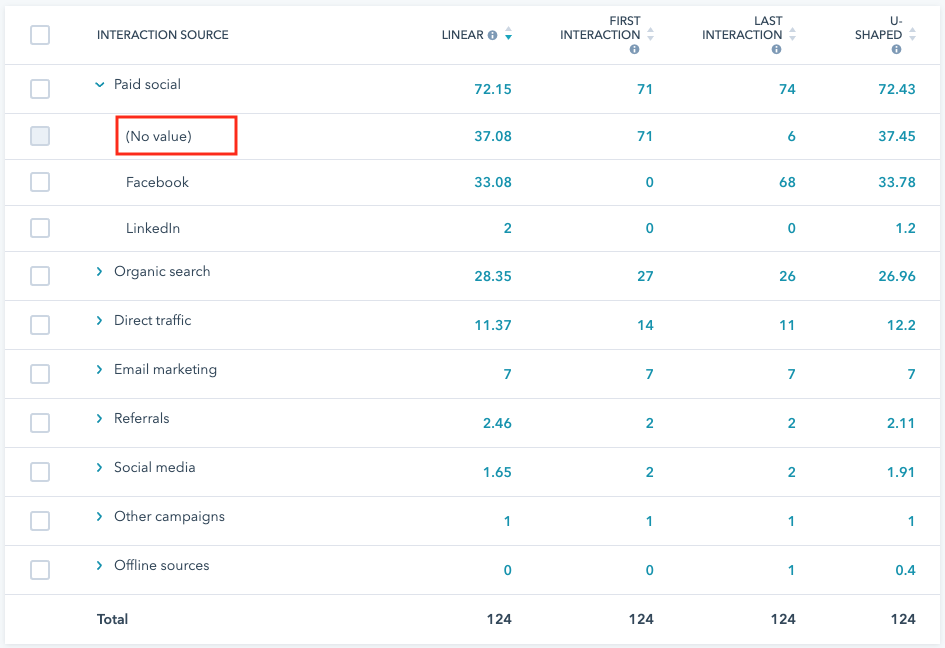- Am sure data is the most common reason. And for most of our clients, we're not going through it with them because yeah, it's just not meaningful. I've got a screenshot in here in the show notes, which shows we've gone interaction source and drilling into social. And when you look at the numbers, it's really hard to know what's the takeaway from this. How do you actually make this actionable?