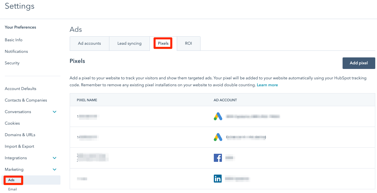 Next step, you connect LI and FB into the HubSpot portal, and then use HubSpot WordPress plugin to insert HubSpot and the LI and FB pixels onto the site.