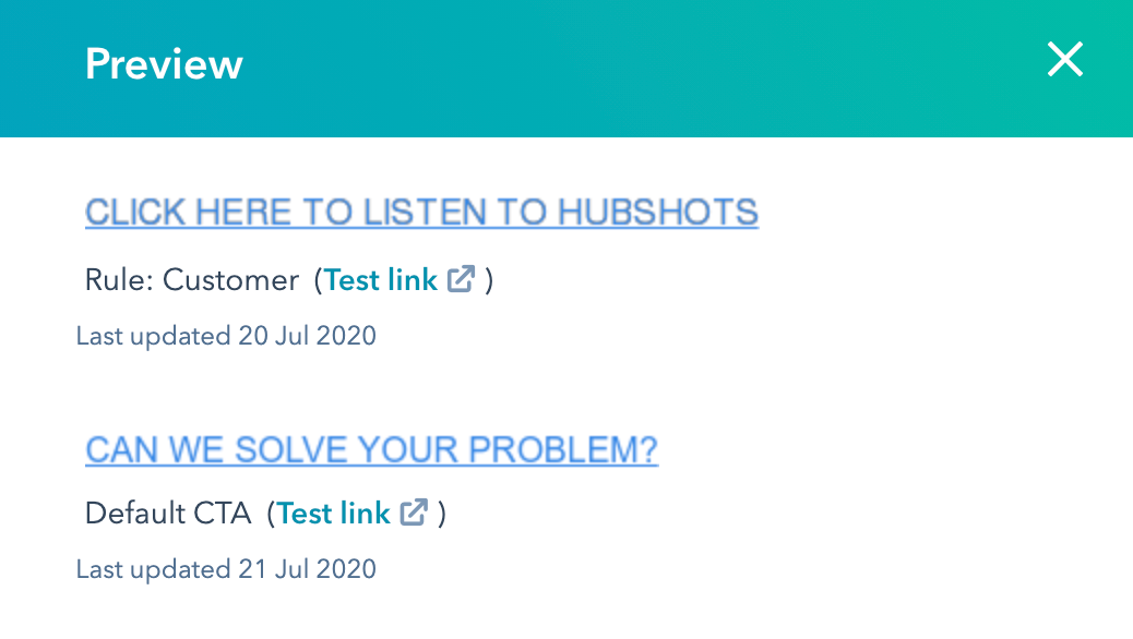 - And the second one, which most people are not aware of, is using smart call to actions to show different actions if someone has already taken, for example, become a customer. So I'll put a example here is, one of the CTAS that we do show is when people or a business is not a customer, we have a call to action that says, how can we solve your problem? Right? So we wanna take them to this page where it describes all the problems they might be having and they can choose one. Now, if they've already done that, and we know that they're a customer, we then say, "Hey, click here to listen to HubShots." because we are already working with them, so we understand. So that's a really simple way to utilize a call to action.