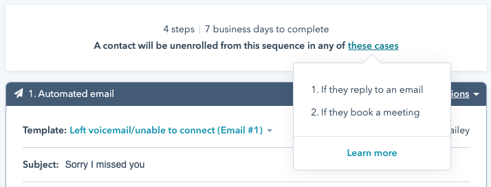 - And the third one, Craig, is that if they do say for example, call you back, you have to manually opt them out so they don't keep getting those, when they're in that, it's really clear on the contact record that you need to unenroll them from that sequence. So I'd encourage people to be active in doing that and not taking the call and forgetting, "This person called up."