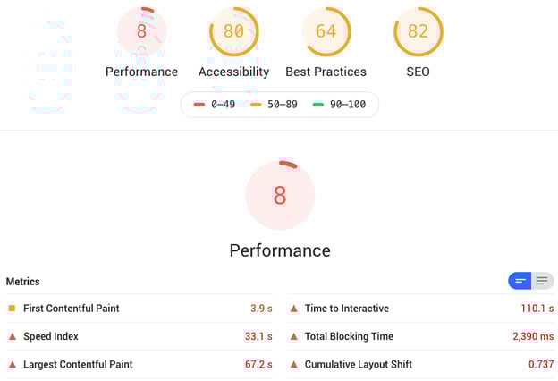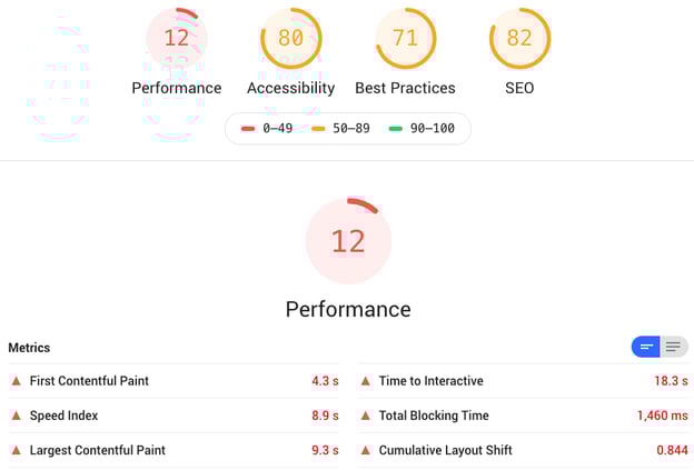 HubShots Episodes page before (check out the ‘Time to interactive’ metric):