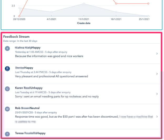 This is useful for keeping an eye on all your survey feedback to easily see what is happening in a given timeframe without having to go into the detail of the Feedback Surveys.
