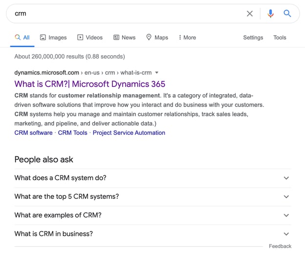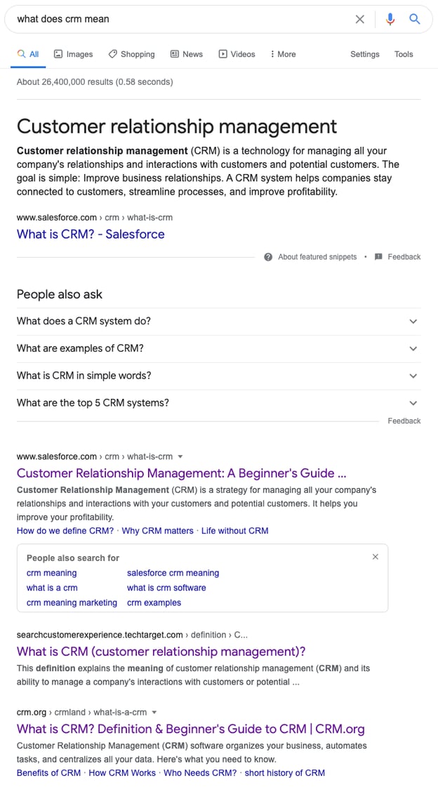 Salesforce owns most of the mindshare for the term - I’m sure you’ll agree - and have worked really hard to dominate Google results (shoutout to Mark Vozzo and the salesforce SEO team at the time):