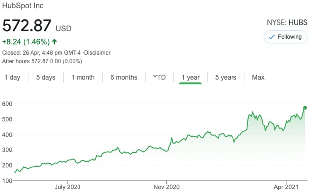 - [Ian] And in other news, HubSpot share prices hit a new high this week, Craig, $572.