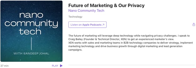 - [Craig] Yeah, thanks to Sandeep for having me as a guest on his podcast, we chatted about, well, the future of marketing, but also privacy legislation and efficiency and automation as well. So go and check it out.