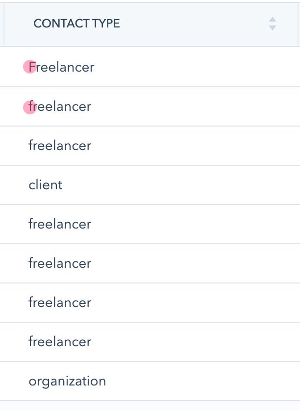 When working with business we find that people haven't given thought about data structures and organisation. This is an example of how this can affect your organisation when building out bots and chats in future. Example, you are marking your contacts by type, but you leave this as a text field. What you should do to minimise data issues is to have this field as a dropdown or multi select.