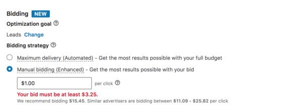 Conversion XL has a good guide to advertising on LinkedIn. In particular, read the advice around setting bids on campaigns - summary: set your click price bids manually and to the lowest possible that LinkedIn will allow.