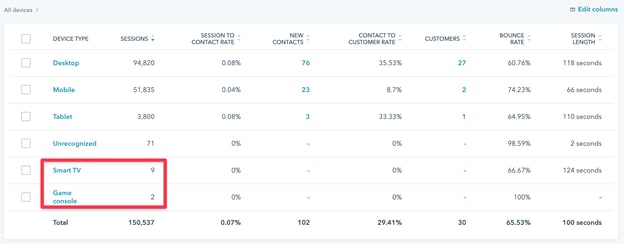 Are you starting to see Smart TVs and Game consoles appearing in your Device reports eg such as in HubSpot’s Traffic Analytics > Devices report: