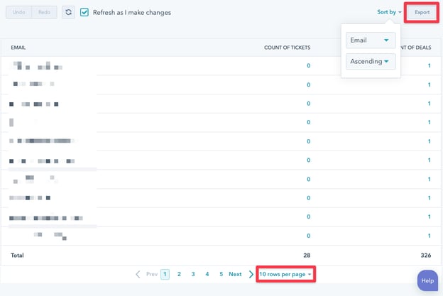 From this report, the client was able to quickly find which contacts were missing Deals or Tickets, and then organise appropriately to fix up.