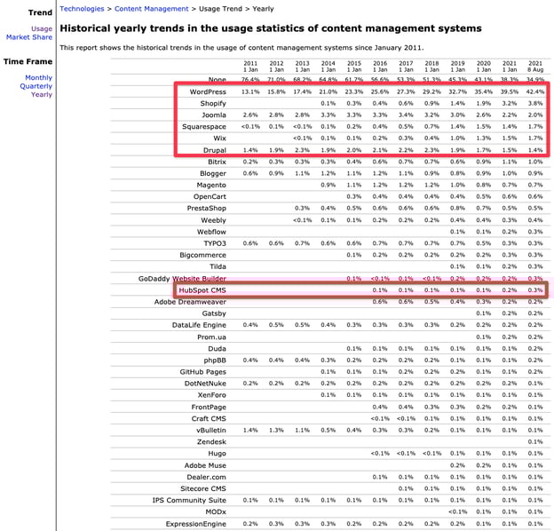 And from there it’s a WordPress, Shopify and HubSpot world.