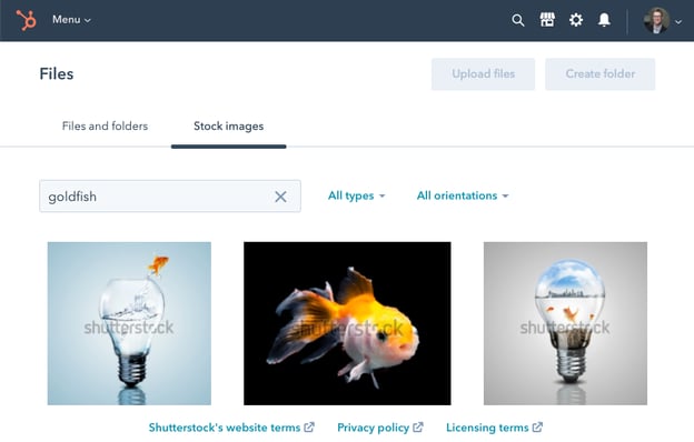 File Manager includes the Shutterstock Stock images option (perfect for selecting all your cliche handshake business images lol)