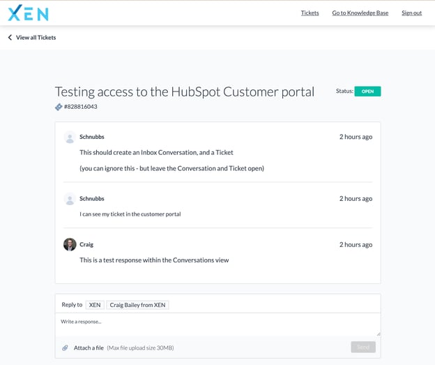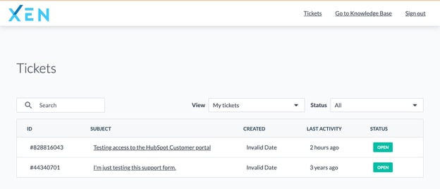 HubSpot now provides a mini website that you can allow contacts to log into to view their ticket history.