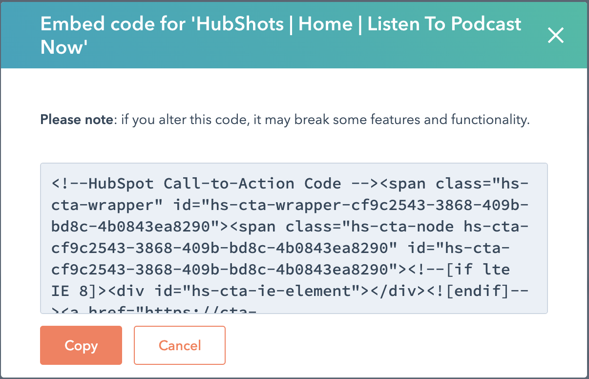 Note: when embedding CTAs on other sites you may experience some performance degradation when the page loads - as it takes time to load the CTA and its associate javascript.