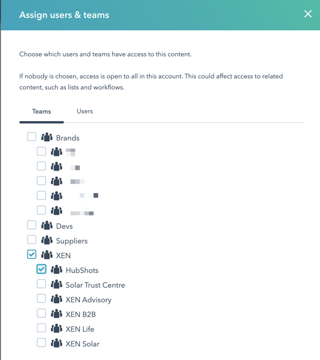 HubSpot uses the term ‘partitioning’ to describe the process of assigning access to various assets (such as CTAs).