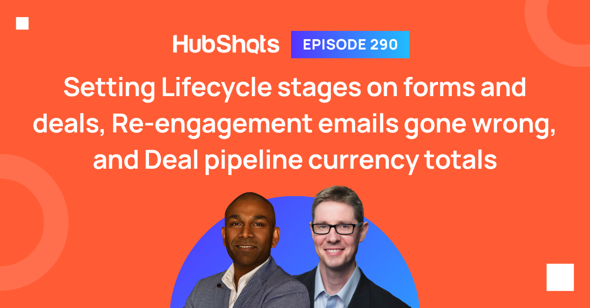 Welcome to HubShots Episode 290: Setting Lifecycle stages on forms and deals, Re-engagement emails gone wrong, and Deal pipeline currency totals This...