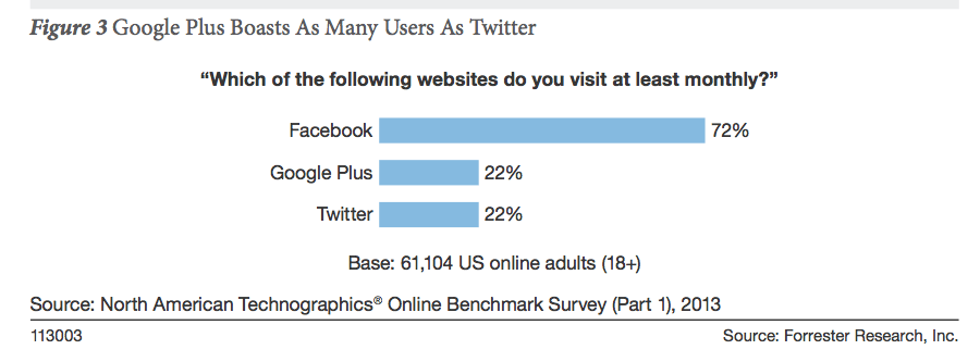 Despite this, G+ did show a very healthy amount of growth between Q4 2012 and Q4 2013, rising from 359m to 1.15bn. However, it’s difficult to get any accurate stats on the site’s usage as Google automatically sets up an account for anyone that signs up for the company’s other products. Research from Forrester found that G+ usage matched that of Twitter in 2013, so it would be interesting to see the figures for last year.
