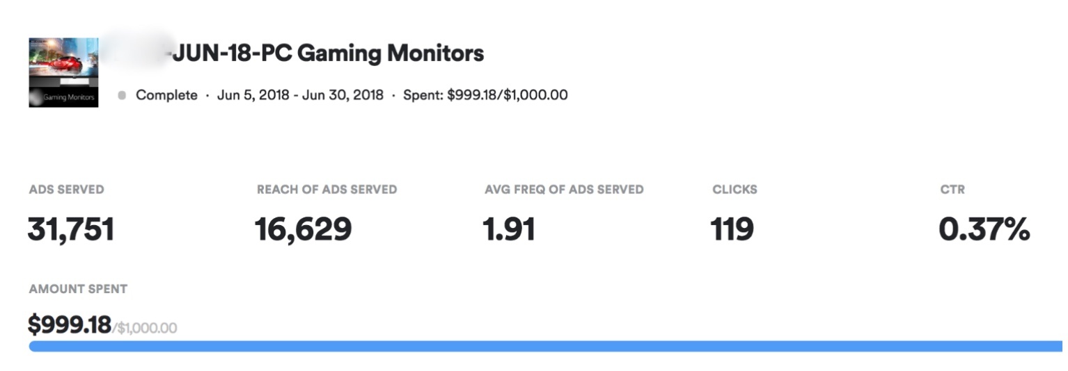 As early adopters, we used this testing period on a number of audio campaigns for our client, a multinational electronics company, promoting their gaming monitors to a specific gaming audience.