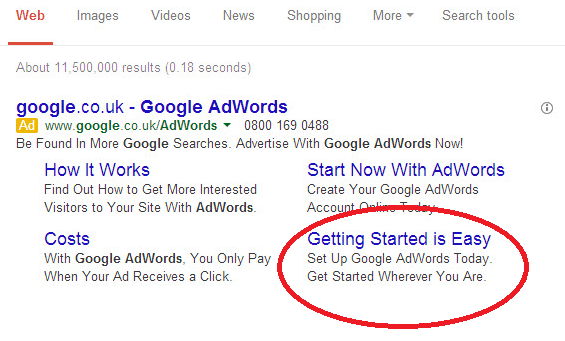 One of the most important extensions to add, and one that will improve your CTR, is the sitelinks extension. This is an additional line of text which displays when your ad reaches the top two positions. You can create as many as you like in your AdWords account, but only four will be displayed and these are decided by Google, so you can’t particularly pick and choose. Add sitelink descriptions of up to two lines to further improve CTR and ensure that your ads really stand out.